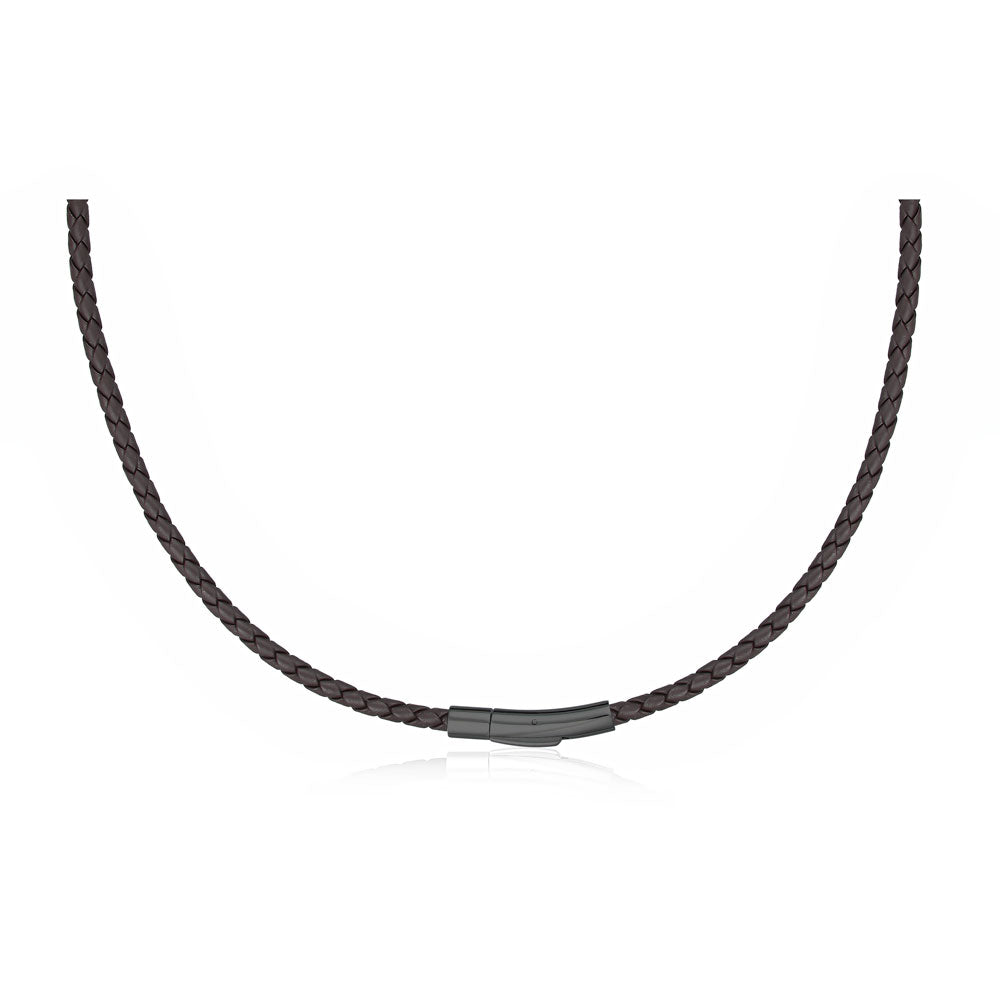 A minimal essential with bold character, this 3mm black braided leather necklace features a secure black stainless steel clasp for a sleek finish. Perfect for wearing solo or with a pendant, this piece blends rugged texture with refined modern styling.