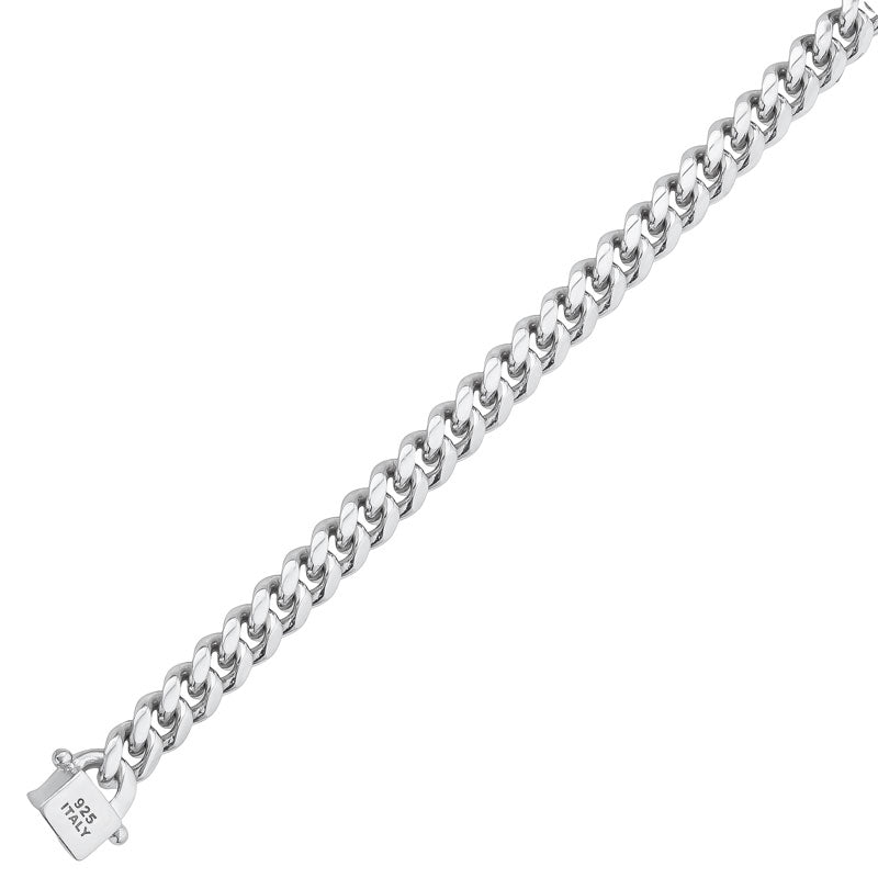 Elevate your style with the (MIA180) Miami Cuban chain, showcasing a bold 6.3mm width and expertly crafted in Italy from solid 925 sterling silver. The chain is finished in premium rhodium plating for enhanced shine and tarnish resistance. Featuring a secure box lock clasp, it blends durability with sleek, high-polish luxury. A timeless staple for any jewelry collection, perfect for everyday wear or standout layering.