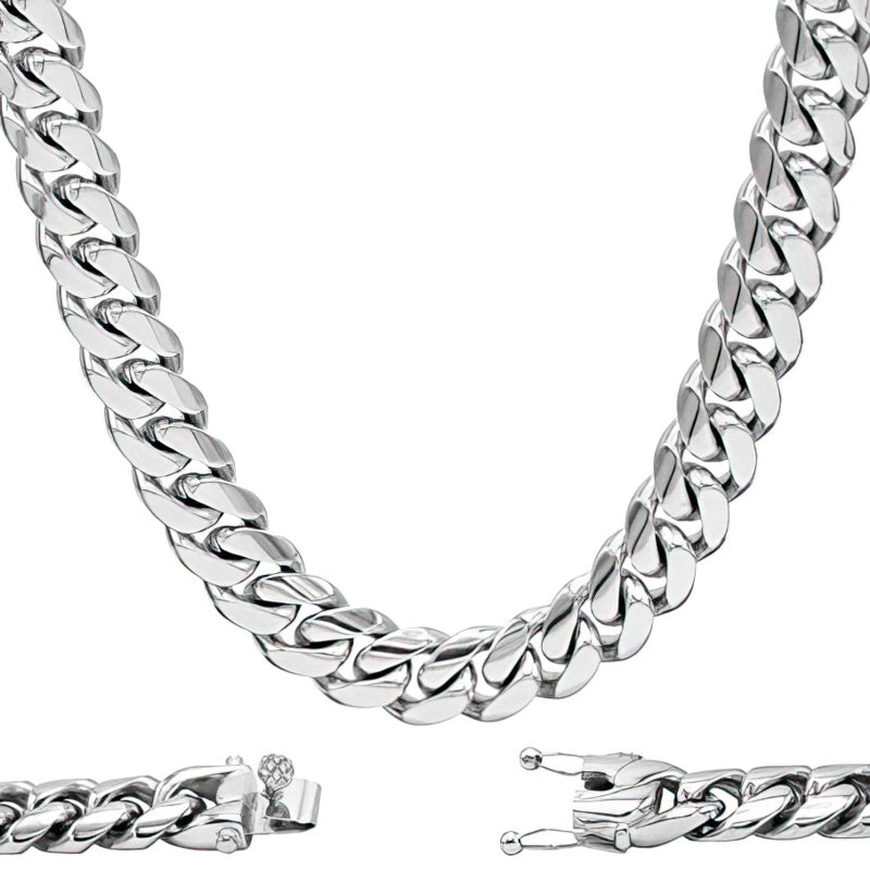 Command attention with the bold and refined MIA250 Miami Cuban chain, featuring a strong 8.2mm width that delivers standout presence and timeless style. Crafted in Italy from solid 925 sterling silver and finished with luxurious rhodium plating, this chain offers long-lasting shine and tarnish resistance. Secured with a durable box lock clasp, it’s the perfect piece for elevating everyday looks or making a powerful statement.