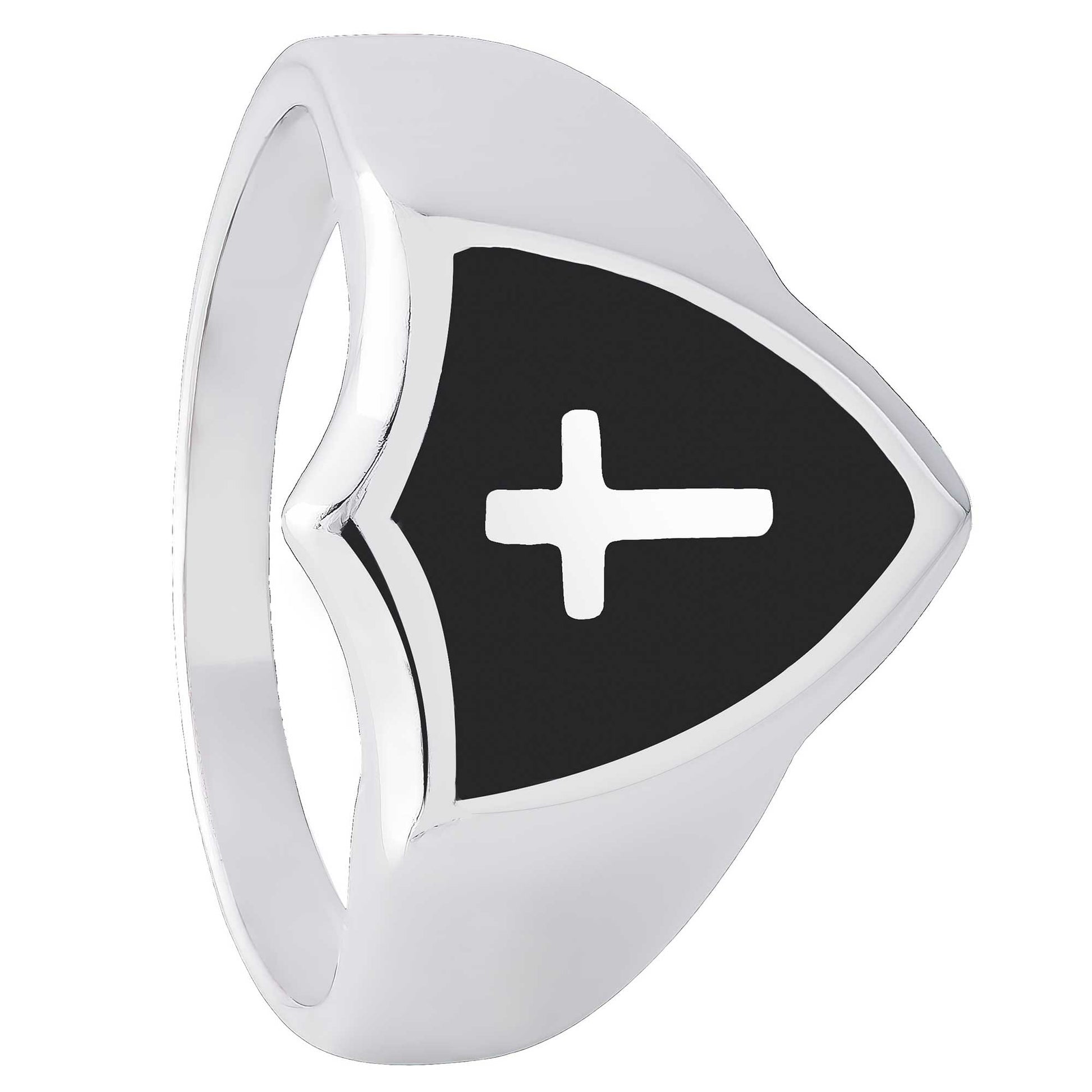 Bold meets refined in the MR191 men’s cross ring, featuring a sleek black enamel inlay that highlights a raised sterling silver cross. Crafted from solid 925 sterling silver and finished with rhodium plating, this ring delivers both timeless shine and durability. The modern contrast between polished silver and deep black enamel creates a striking yet wearable piece that speaks of strength, style, and faith.